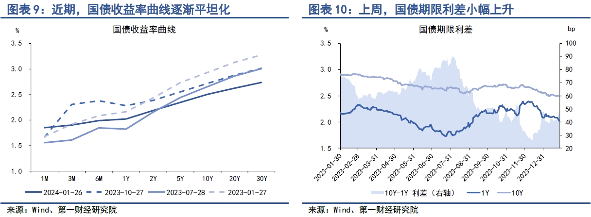 上周◈★✿✿,主要期限国债收益率均下行◈★✿✿。从短端来看◈★✿✿,上周1月期◈★✿✿、6月期以及1年期国债收益率均值分别下降0.19bp◈★✿✿、5.09bp和4.08bp◈★✿✿。从中长端来看◈★✿✿,上周2年期◈★✿✿、5年期◈★✿✿、10年期以及30年期国债收益率分别下降4.04bp◈★✿✿、4.77bp◈★✿✿、1.35bp以及4.46bp◈★✿✿。