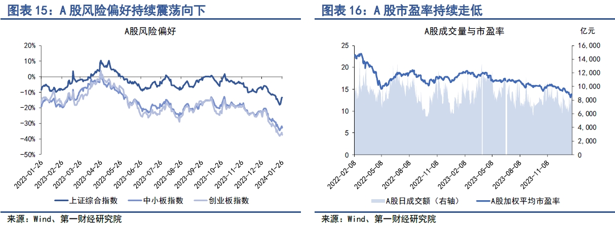 上周◈★✿✿,A股融资总额为122.39亿元◈★✿✿,较前一周下降38.3亿元◈★✿✿。从A股融资4周滚动平均的数据来看◈★✿✿,自去年四季度起◈★✿✿,A股融资维持在一年来的低位◈★✿✿。从二级市场来看◈★✿✿,上周A股主要股指涨跌不一◈★✿✿,其中上证综指上涨2.8%◈★✿✿,中小板指下跌1.2%◈★✿✿,创业板指下跌1.9%◈★✿✿。以股指同比增速减去10年期国债收益率所衡量的市场风险偏好持续震荡向下◈★✿✿。A股市盈率降至13.47◈★✿✿,仍处于2013年以来的最低水平◈★✿✿。年内k8·凯发(国际)◈★✿✿,A股融资与融券余额的差额快速下降◈★✿✿,由年初的1.52万亿元下降至1.46万亿元◈★✿✿,占A股总市值的比重下降至2%以下◈★✿✿。